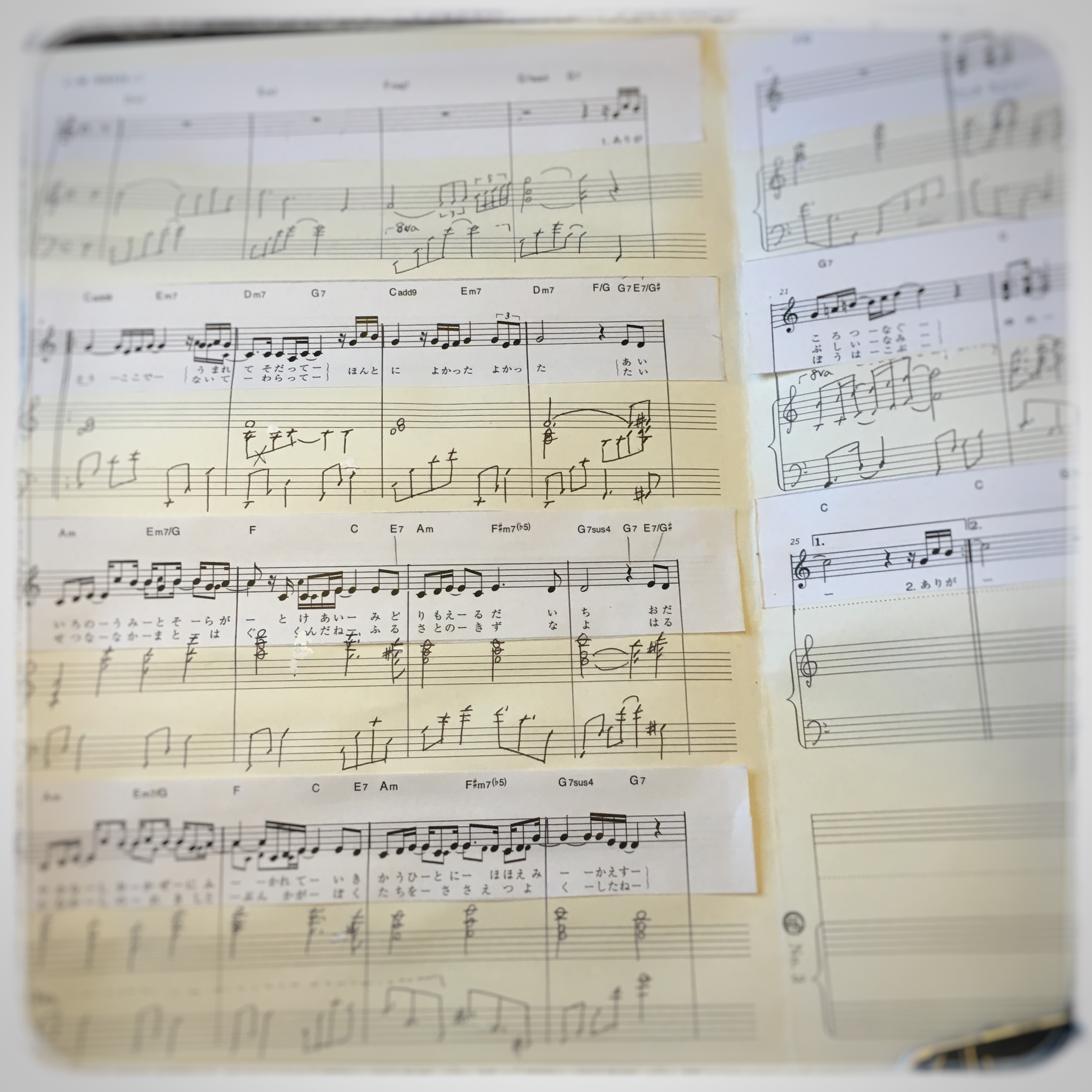 樹原先生の曲を編曲して、先生の前で弾き語り。「私らしい編曲」と言われて、編曲にも個性が出るんだな、と驚き。
